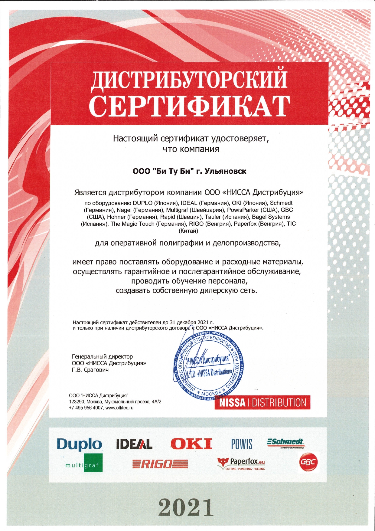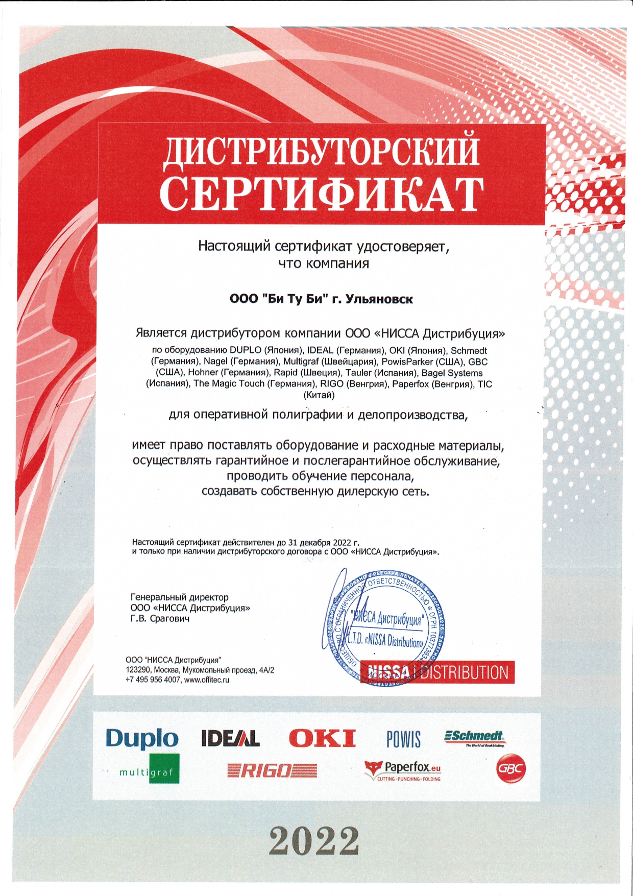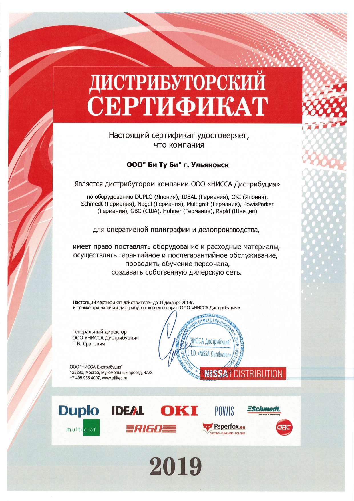 Компания «Би Ту Би» г.Ульяновск специализируется на поставках в Поволжском регионе: современного оборудования для оперативной полиграфии; оборудования для специальных видов печати широкоформатной печати; оборудования для делопроизводства; копировально-множительной техники; офисных расходных материалов; сервисное обслуживание офисной техники; ремонт офисной техники; заправка и ремонт картриджей для задач малого и среднего бизнеса, так и для крупных организаций и производств.   Основная идея создания компании - быть ближе к своему потребителю, знать его цели и задачи и помогать воплощать их на базе прогрессивных технических и технологических решений в сочетании с оптимальными финансовыми условиями.